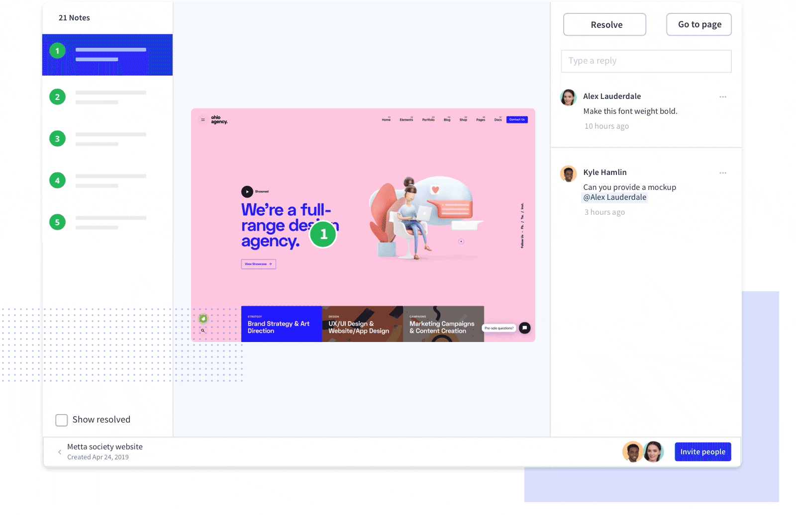 Every comment is pinned to the exact element, so there’s zero ambiguity.