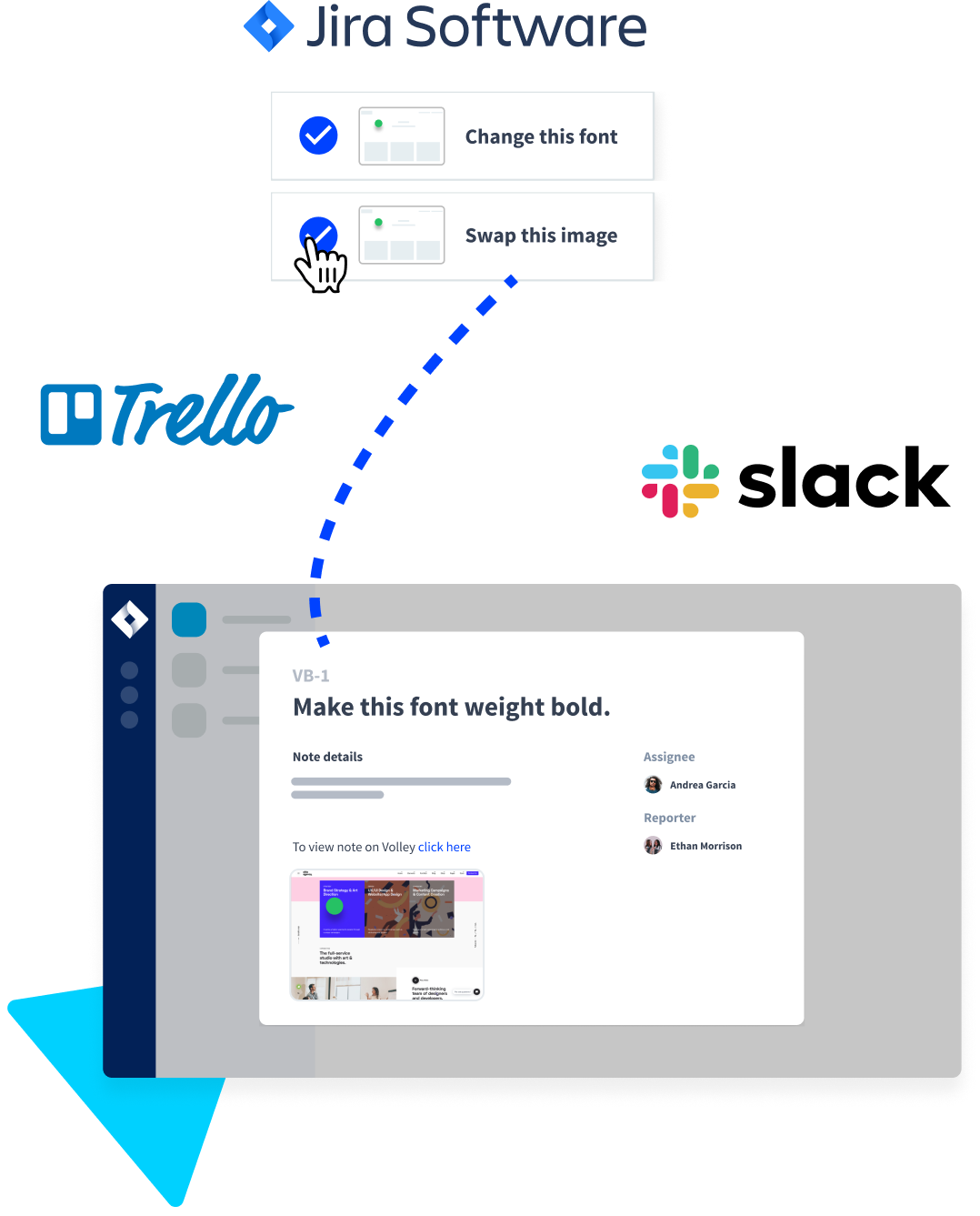 Yes. Volley lets you export feedback to Jira or Trello so your team can track work without retyping.